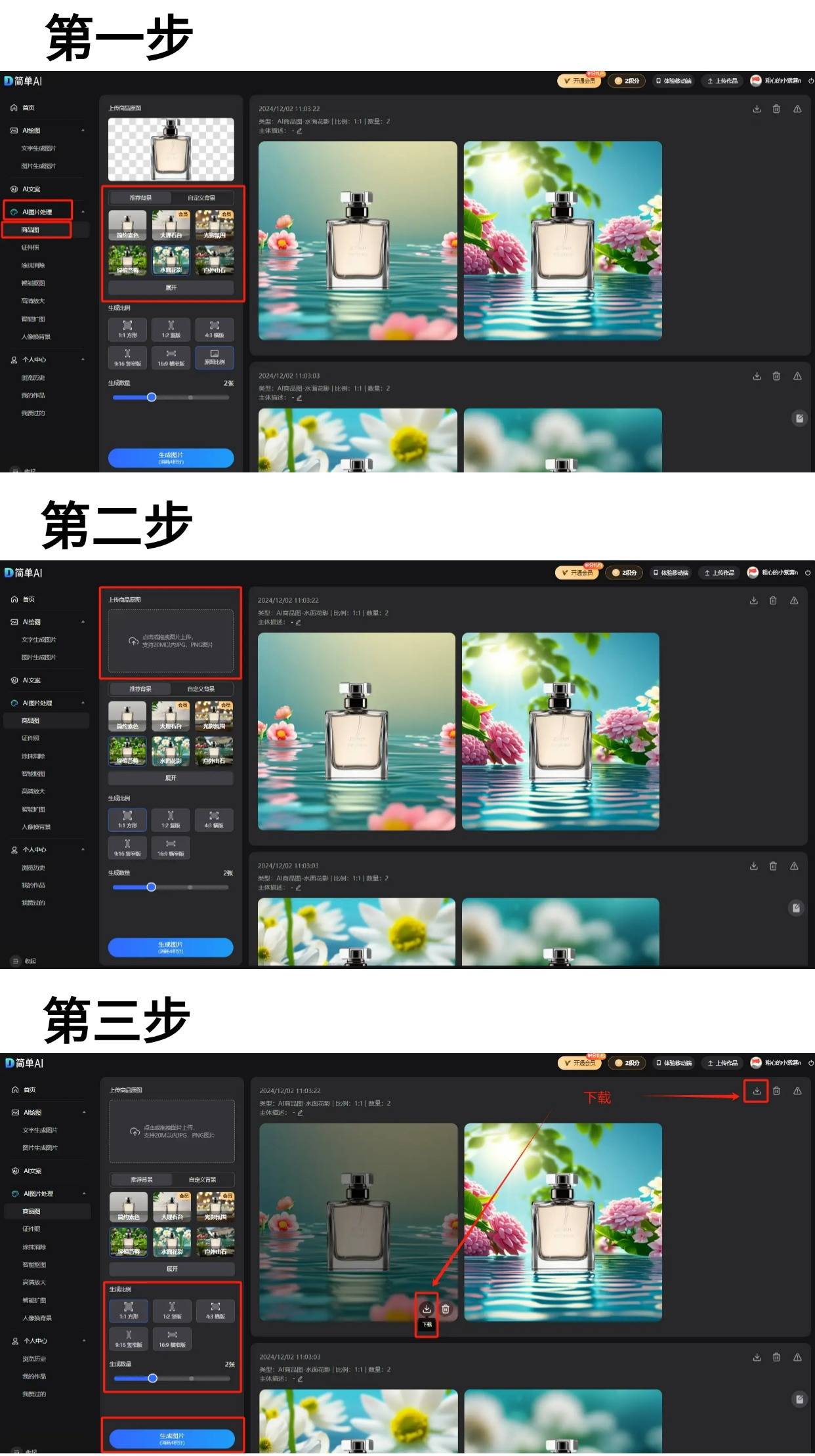 第三步:选择生成比例及生成数量,或者正在微信小法式搜刮【简单AI】。点击虚线内的【图片框】,#唯品会#天猫#京东商城#网红曲播#当地糊口#快消#阿里#互联网#快消品说起AI商品图的布景替代,电商图片的表示间接影响到消费者的采办决策,可按照需求选择【保举布景】(新手敌对)或【自定义布景】(度更高)。点击“生成图片”,它的AI算法还能不竭优化,承担了如斯大的工做量却难以达到抱负的结果,每次生成的结果都是未知的,别再犹疑了,特别是像凯利泰如许专注于细分市场的专精特新“小巨人”,就可免得费下载啦~你能够将这些图片用于淘宝从图、视频封面、海报制做等各类电商场景中,图片将会从动上传到正在线平台,点击下载图标,前往搜狐,网坐供给生成自配图、创意海报、种草笔记、爆款题目、勾当方案、AI商品图及AI证件照等多项AI创做功能。这个东西让AI换布景变得简曲垂手可得,电商销冠都正在用的商品图、营销方案生成神器,操做简单、结果立竿见影,图像质量取视觉结果也就能更上一层楼,成交额达到了1.28亿元,它可以或许智能识别商品!